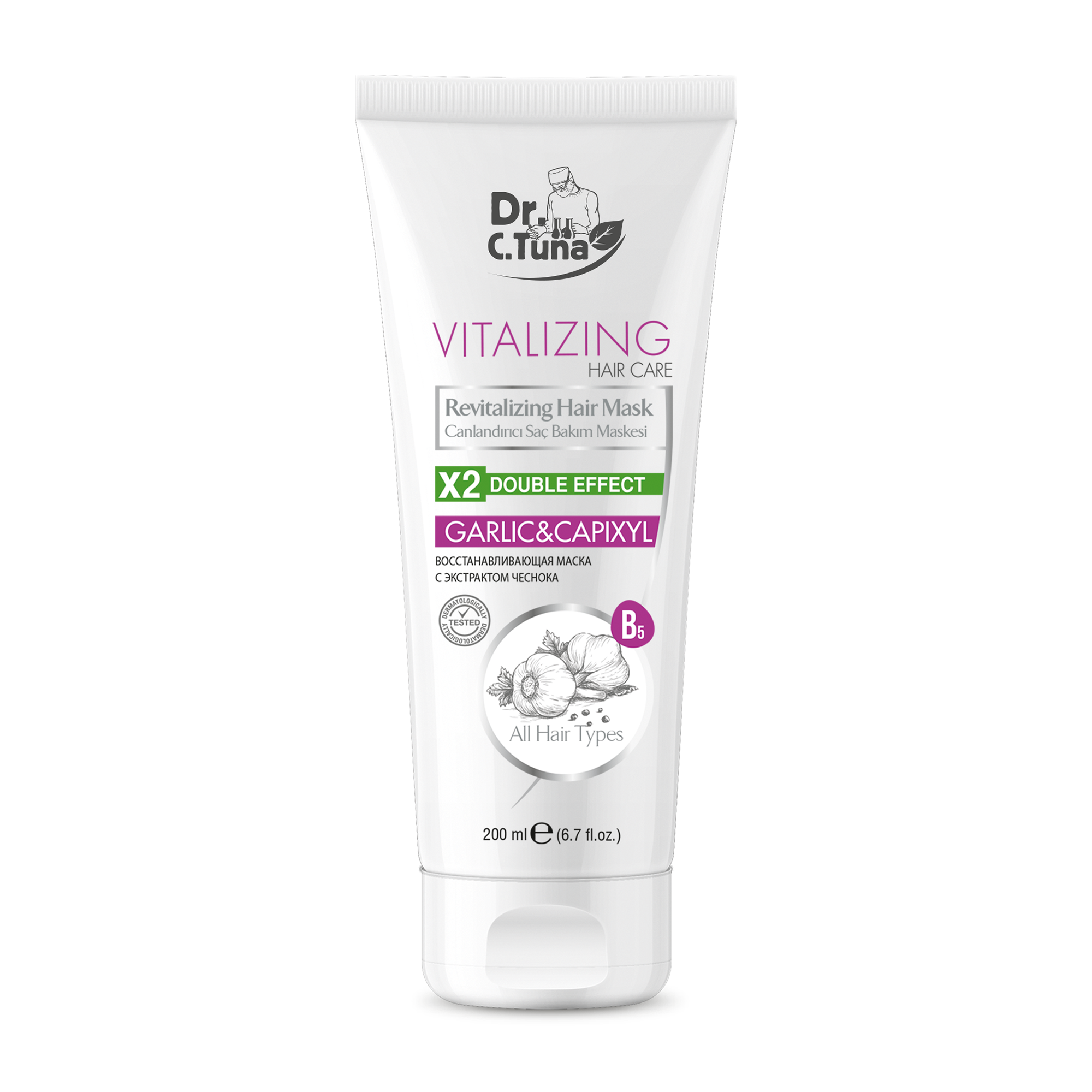 Dr. C. Tuna Revitalizing Garlic Hair Mask, enriched with Garlic and Capixyl, provides a silky softness. Its light and non-greasy formula provides a perfect care for weak hair.